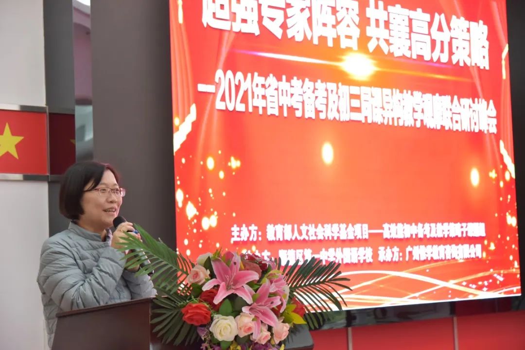 曾祥明执行校长首先开展《立志高远 追求卓越――2021年新中考备考思路及对策》的主题讲话。他向在座教育专家及同行详细介绍我校在中考备考中所作出的探索和取得的成就。