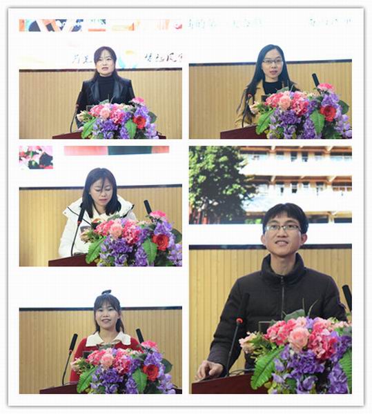 五位教坛新秀代表青年学科教师、青年班主任、青年管理者作学习汇报