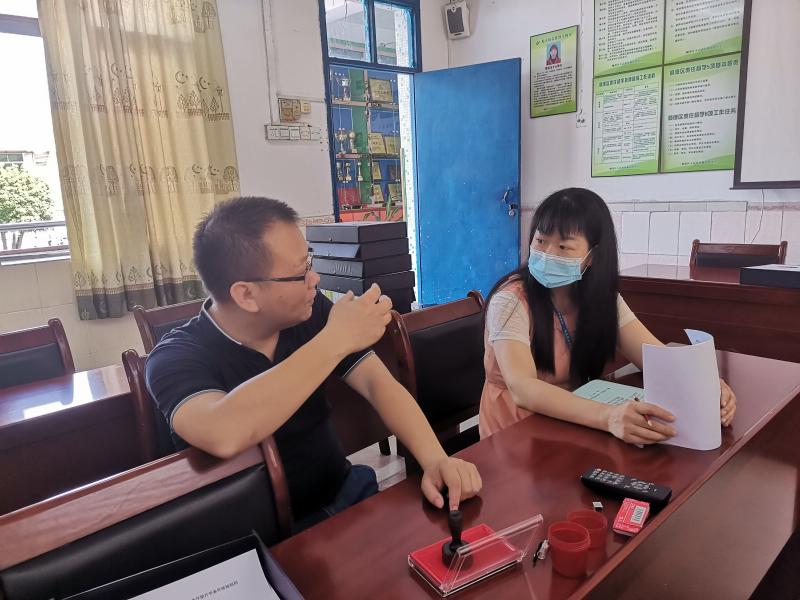 周督学向在苏溪小学驻点的赖国勇卫生副校长了解复学以来学生健康状况,充分了解疫情防控工作是否落实到位。