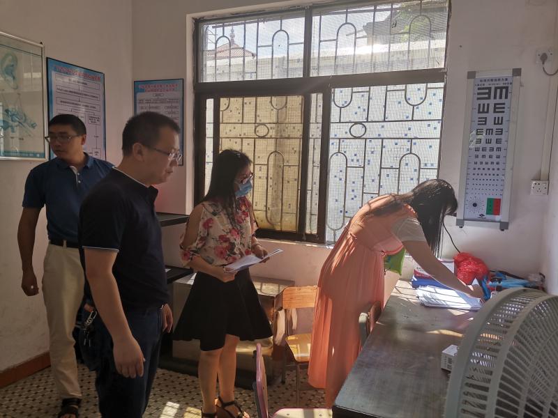 周红玉督学来到苏溪小学,杨非副校长、梁兆玲主任、朱宏辉主任、胡蕴玲主任陪同检查。周督学巡查了校门口、保安室、学校保健室、健康观察室等校内重要场所,并查看校门口外来访客信息登记表、师生测温记录、场室消毒记录、健康教育记录等各项台账资料。