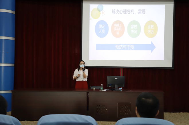 最后,张老师提出学校以及每一个老师都应该要对学生心理危机做好预防和关注,从“心”出发,关注学生心理健康。也提醒老师们别忘了关注自身心理健康,照顾好自己。