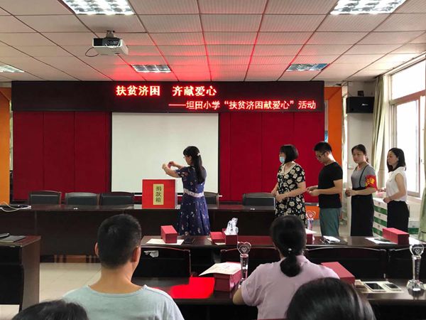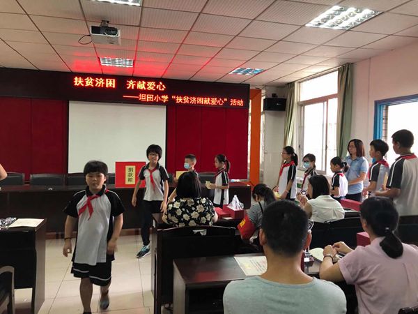 每年6月30日举办广东扶贫济困日活动,是我省推进扶贫济困事业的一大创举。为此龙江坦田小学积极响应省委、省政府的号召,倡议全校师生及家长积极参与扶贫捐款活动,全体师生都表现出来极大的爱心。