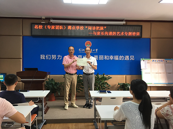 夏日炎炎,酷暑难当,但叶霖佳小学的老师们学习的热情丝毫不受影响。2020年7月22日下午3:30顺德演讲与口才协会钟家勤副会长结合在我校蹲点“问诊把脉”发现的问题,百忙中抽空前来为全校老师作“与家长沟通的艺术专题”的培训。