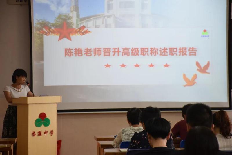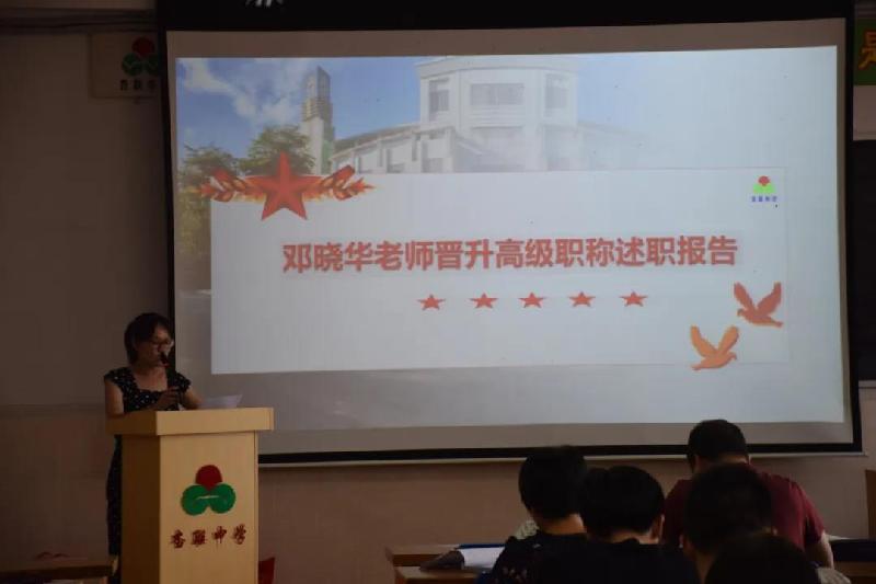十位申报晋升高级职称的教师们从自己的工作经历、师德师风、教育教学、教研科研、贡献奖励等方面进行了公开述职。参加会议的全体教师认真聆听了他们的发言,并对他们辉煌的教书育人业绩报以热烈的掌声。