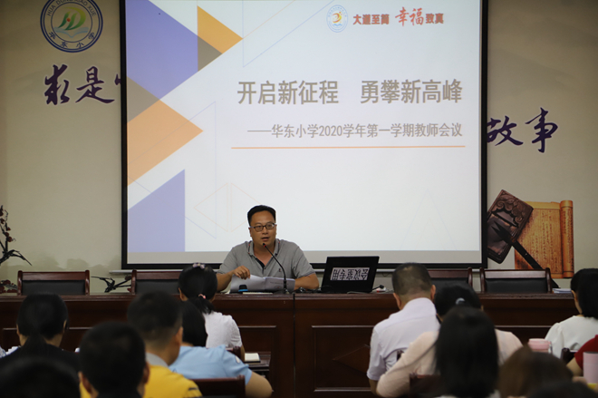 缤纷的九月,伴着夏季的最后一丝热气,星空体育又迎来了开学季。告别长假,新学期,开启新征程。为了确保开学工作的顺利进行,8月30日上午,华东小学召开新学期全体教职工会议。会议由何慧荣副校长主持。