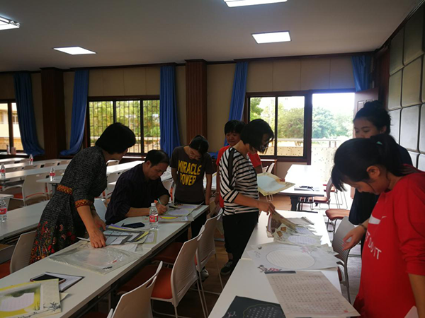 图为:教师规范字比赛,书法协会吴端荣副会长进行书法指导