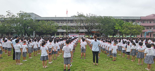 图为:“同讲普通话,携手进小康”国旗下讲话