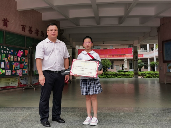 接下来颁发的是优秀家长家委、书香家庭:欧阳益樊家长欧阳德武获龙江镇优秀家长称号;熊利平家长熊勇明、何梦韩家长余丽获龙江镇优秀家委称号;六1班曾梦雅、六2班曾玮坚家庭获校园亲子书香家庭称号。