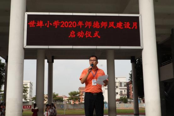 随后,罗排牵副校长向全体师生致辞并宣布“世埠小学师德师风教育月活动”正式启动。罗校长向我校老师表达了衷心的祝福和美好的期望。他希望所有教师加强师德修养,锤炼高尚品德,教书育人,为人师表,努力做一个高尚的老师。