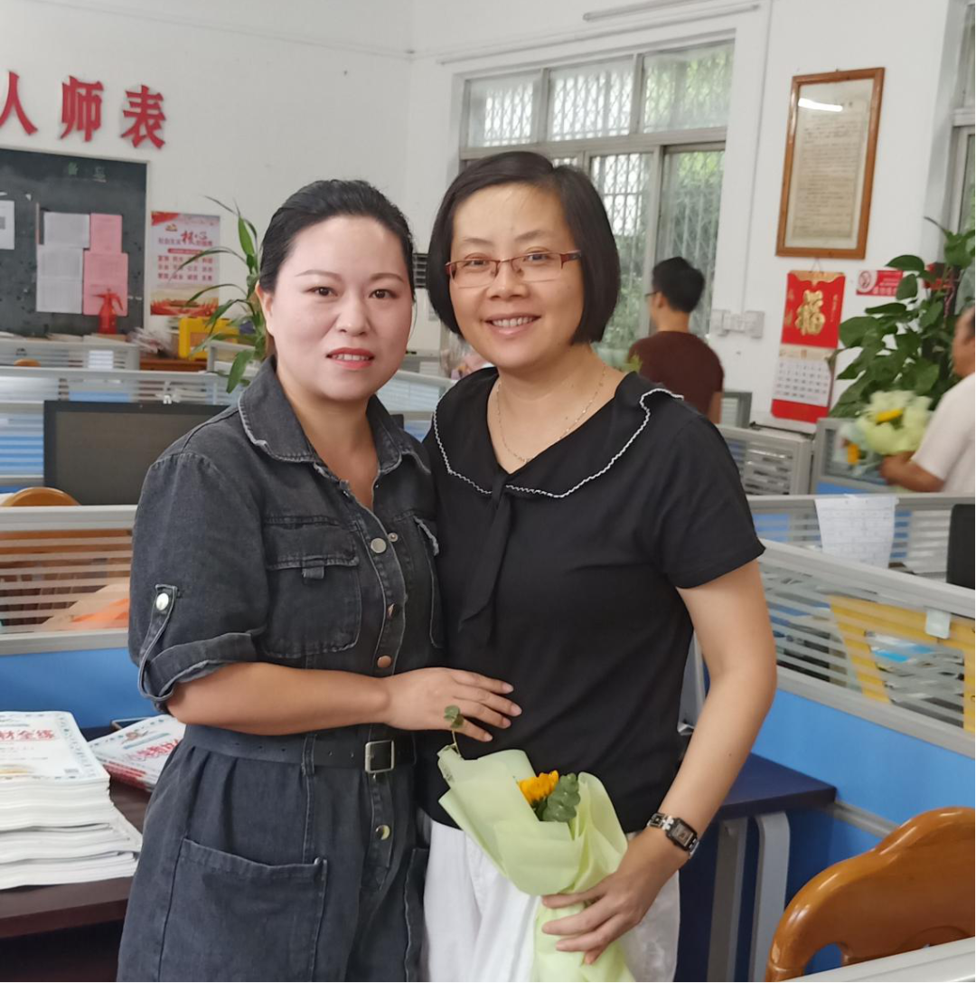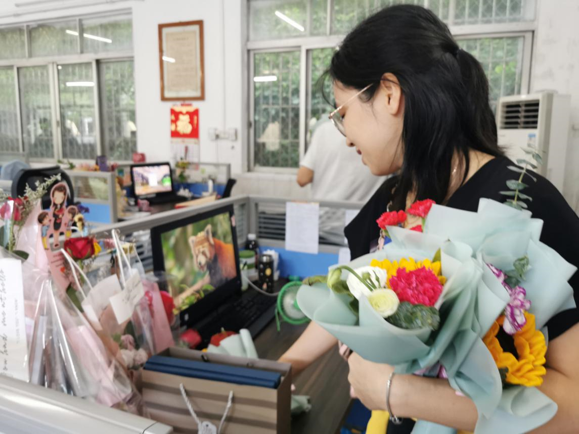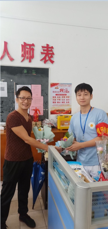 (家委代表们手捧鲜花向老师们送来满满的节日仪式感)