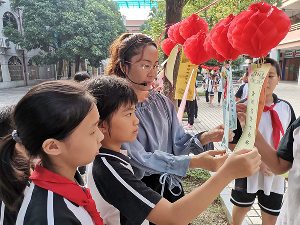 别过夏花绚烂,走进秋叶静美,秋天没有了夏天的热烈灿烂,更多的是沉静和内敛。秋,是生命的沉淀,是思绪的静美,不经意间散落在一地落叶里。中秋携国庆齐至,藉此佳节,我校思敏灯谜小社团在2020年9月29日下午,在充满秋色的小广场上,开展了灯谜展猜活动。