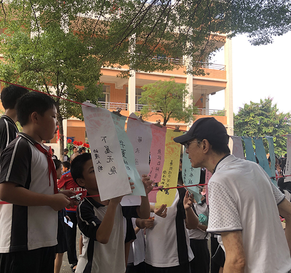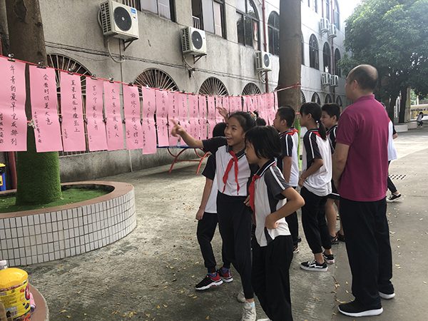是日,秋高气爽,红灯笼系着谜条,在秋风中飞舞。孩子们快乐地穿行在谜条间,或沉思,或讨论,或驻足仰望……络绎不绝。猜中了,取下谜条,兴冲冲地走到兑奖区,换来一颗颗甜甜的糖果。猜不中,也不泄气,继续思考……灯谜协会到谭沃宏老师和叶汝泉老师也一同前来,跟星空体育到小谜友互动,他们上那么耐心地讲解,孩子们仰着脑袋,认真聆听着……
