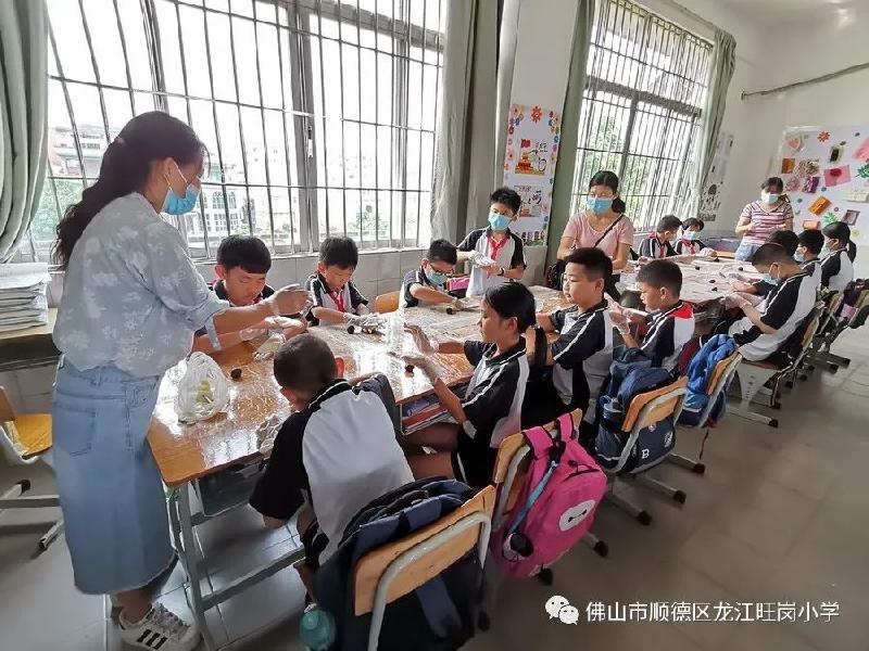 接下来,在几位家长的帮助下,同学们先做好了做月饼的准备――铺好桌面、按比例分好面皮和馅,个个都怀着激动的心情等待着做月饼。