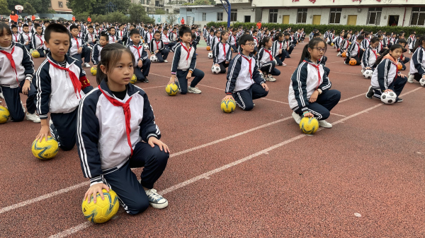 汇报交流结束之后,来访一行领导和老师来到聚龙小学的操场观看聚龙小学的足球大课间展示活动。只见聚龙小学的学生们以班级为单位,跟着音乐的节拍进行颠球、踩球、踢球、运球等足球动作,架势十足,跑操环节所有的正副班主任更是带着学生一起跑动起来,师生步伐整齐划一、节奏感十足赢得来访者一致的赞赏。足球小组活动环节,佛山裕达足球俱乐部也对聚龙小学足球队进行了训练课的展示。最后,陈涌聚龙小学邹雪琴校长为兄弟学校赠旗表谢意。