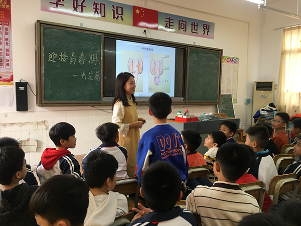 由于男女生生理发育结构以及发育的情况不同,本次讲座分为男女学生两批次分别进行,两个讲座均由龙江镇青春健康小组讲师杨翠雯老师进行讲授。