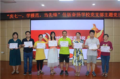 为庆祝中国共产党成立99周年,引导广大党员教师重温党史、学习时代楷模精神、表扬先进、及时树立先锋模范,弘扬党的优良传统,传承红色基因,践行共产党人的初心使命。2020年6月28日下午,仕版奋扬学校党支部开展”庆七一,学模范,当先锋“主题党日活动”。