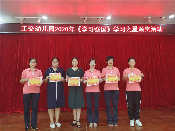 6月30日上午在工交幼儿园党支部组织委员梁燕芳同志主持下,开展了全园教职工“学习强国”平台学习评比表彰活动。进一步激发教职工主动学、深入学“学习强国”的热情与动力,促使党员、群众形成在平台上学习的日常习惯和行为自觉,促进广大党员、群众共同进步。会上,首先公布了每位教师的学习积分及排名情况,并依此评选出一、二、三等奖。由柯英丽书记为获奖教师颁发了奖状。