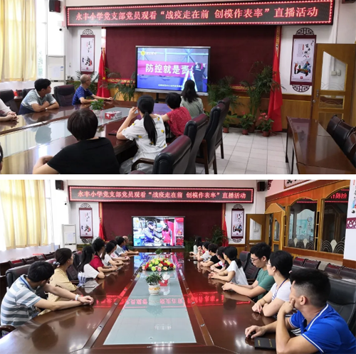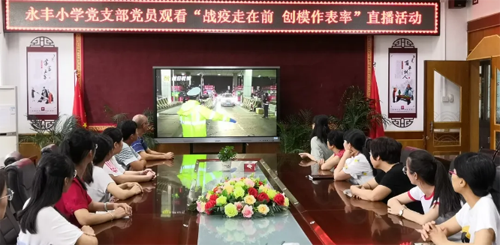 2020年6月28日下午3点整,永丰小学党支部党员在吴凡书记的组织下,观看“战疫走在前,创模作表率”直播活动。