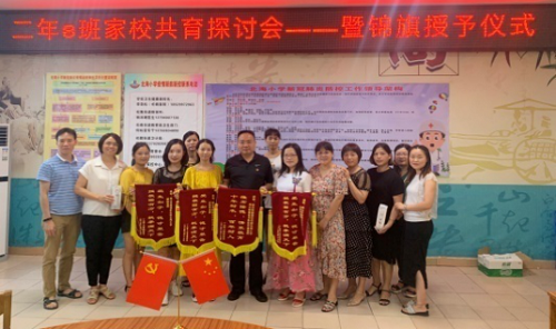 会议的最后,二年8班全体同学及家长本着诚挚的心,自发地为何小祥校长以及三位老师献上感恩之旗!同时,祝愿北海小学在今后会越办越好,为祖国培育出一批批优秀人才!