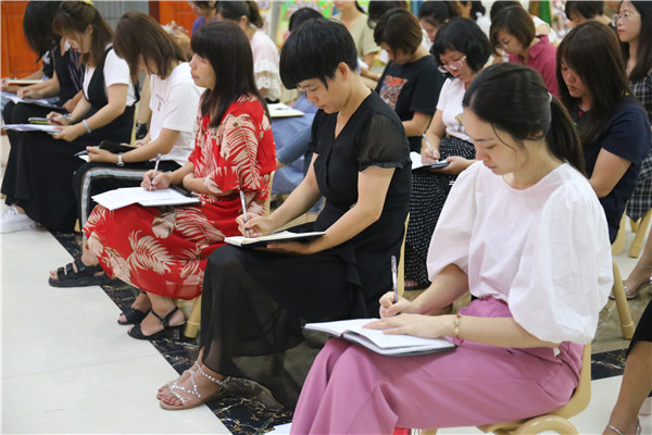 首先,柯园长从多个方面对教师进行了师德方面的培训,首先通过真实的一个个案例让教师铭记要时刻警惕自己的一言一行。师德值得反思的问题、关爱学生、尊重家长及为人师表方面,还剖析了新兵-精兵-将的成长过程,进行了细致的学习。
