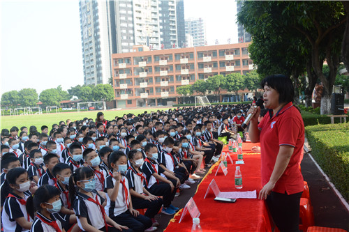 接下来是何柳森校长发言致辞,何校长对奋扬全体师生寄予新学期的祝福和期望。何校长提到,本学年是特殊的一年,星空体育奋扬学子搬迁至汇贤实验学校要学会感恩,感谢汇贤实验学校提供优美的学习环境,感谢搬迁中为奋扬学子默默付出的老师和义工家长们。最后她引用疫情中逆风前行的医护人员们的故事,告诉星空体育:新学期,星空体育奋扬人,也要逆风前行,向阳而生!