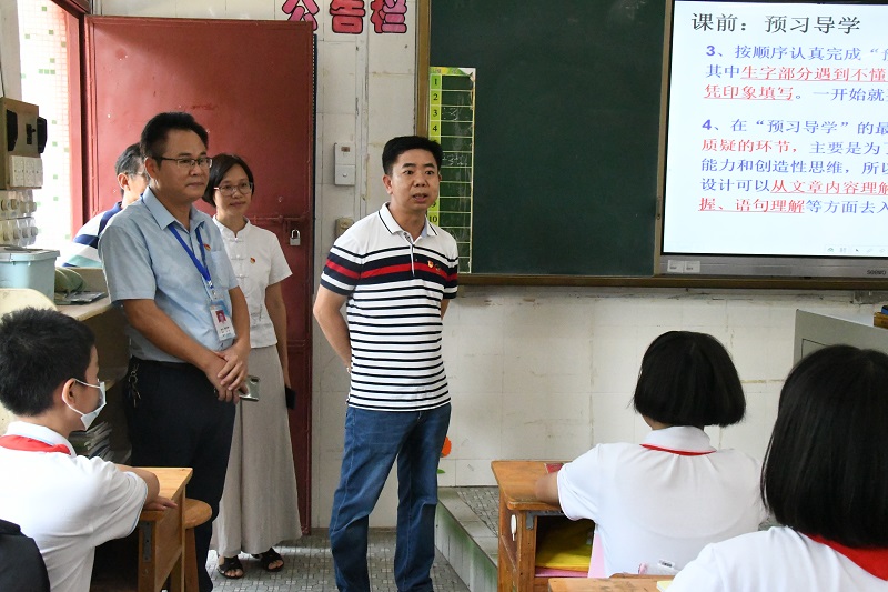 9月1日,伦教街道各中小学校正式开学!上午,伦教街道办事处副主任梁 滔、宣传文体旅游办公室(教育办公室)主任陈雪颜,街道教育教学研究室主任姚兆军一行到学校视察开学工作。