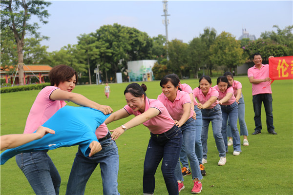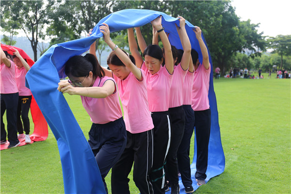 本次拓展活动,在主持人高嘉韵老师的带领下,通过投身到热身游戏、团队协作、挑战自我的分组竞赛,感悟自我潜能和团队力量,达到沟通融洽人际关系,突破自我、提升团队意识的目的。全体教职员工分成四个小组分别参加了“穿衣服接龙”、“超级无敌风火轮”、“齐心火车”等训练项目。在各组队长的组织下,各队员分工合理,配合到位,在规定时间内有条不紊地顺利完成每一个拓展游戏。游戏中,虽然大家遇到了各种问题和困难,但是通过队员们的群策群力、默契配合和坚持不懈,最后都战胜困难取得胜利。大家彼此忘记了年龄,忘记了身份,忘记了生活的环境,个个热情高涨,全身心地投入到充满有趣的拓展训练中,体现了每个团队战胜困难、争取胜利的信心和决心,尽情地展现团队的凝聚力、战斗力和创造力。