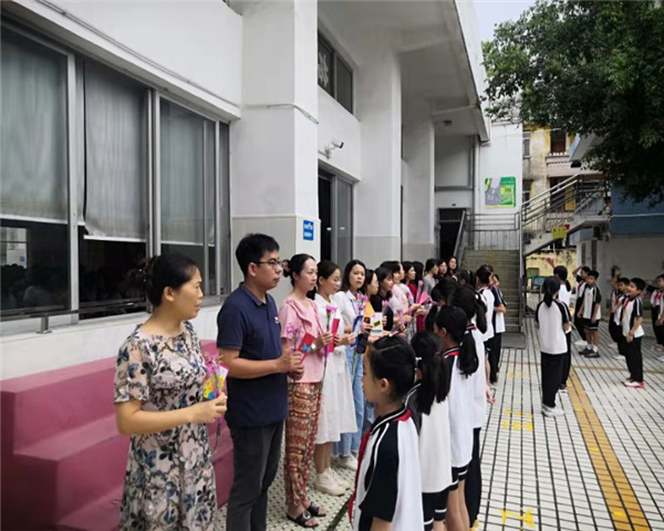 9月10日上午,全体队员在荔村小学小操场和礼堂进行了简单而隆重的庆祝活动。首先全体队员为教师们献上歌曲《老师》,接着队员代表向全体教师敬献贺卡和鲜花。一张张精美的贺卡都是孩子们亲手制作,一张张贺卡带着孩子们的感恩,送到了老师们的手中。老师们接过包含着孩子们情意的贺卡,脸上洋溢着幸福的笑容,眼中闪动着激动的泪花,心底涌动着深深的感动。