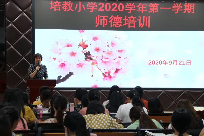 陶行知先生曾经说过:“学高为师,德高为范”。良好的师德,高尚的师风是做好教育的核心。为了不断提高学校教职工的师德修养,2020年9月21日,培教小学电教室举办了一场师德培训会,本次培训由何雪文副书记主持。
