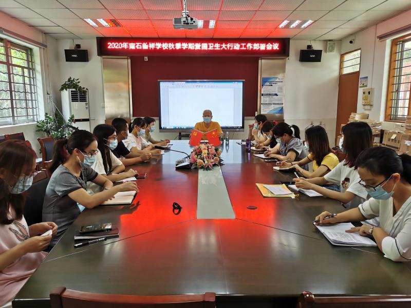 2020年霞石善祥学校秋季学期爱国卫生大行动工作部署会议 为落实好本次爱国卫生大行动,学校召开工作动员部署会,传达本次行动通知精神。9月27日下午,我校冯志峰校长对本次行动的意义进行了详细的阐述,要求达到“全覆盖、无死角、彻整治”的目标。9月28日上午,我校通过国旗下讲话广泛宣传爱国卫生运动,让师生们了解此次活动的目的与意义,积极动员全校师生参与其中。下午托管课,全体师生有序分工:学生清扫班级、公区;教师消毒班级;后勤阿姨清理堆积物并清除每处卫生死角。活动中,人人齐动手,个个有条不紊,密切配合,不怕脏、不怕累,将一个个顽固的卫生死角彻底清理干净。 国旗下讲话广泛宣传爱国卫生运动 全校师生积极参与其中 此次爱国卫生大行动通过大家的齐心协力,提高了全体师生的卫生意识,更深入地了解并掌握卫生基本常识,从而树立“讲卫生光荣,不讲卫生可耻”的新风尚。愿如此有活力、行动力的校园能够“永葆年轻、健康”,学生亦能健康快乐成长!
