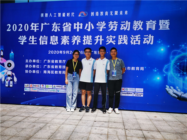 原来,9月23日至26日在佛山市千灯湖酒店举办的广东省中小学劳动教育暨学生信息素养提升实践活动比赛中,陈惠南纪念中学共派出两支队伍代表顺德区参加此次省赛,这两支队伍是谢诗雯老师带领的人工智能队伍和欧旭明老师带领的编程无人机队伍,分别获得省一、二等奖!