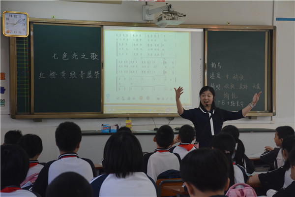 首先,评估专家“推门”深入课堂听课,随机听取了语文、数学、音乐等课堂教学,深入了解教师教学和学生课堂学习的开展情况。语文课上,梁健欣老师结合学校“学导练”互助教学模式展示小组互助学习,充分发挥学生的学习主体性,创设以生为主的互助课堂;数学课上,张绮雯老师创设精彩的足球比赛情境,放手让学生以小组为单位进行探究、讨论、展示,充分展示了“学导练”互助教学课堂;音乐课上,肖晓虹老师引导学生围绕“彩虹”的特点,通过猜谜语、七色光的描述、伴唱、二声部的演唱等环节,与学生们共同演唱了“七色光之歌”,渗透积极向上的阳光教育,体现了奋扬学校“让每一个生命都沐浴阳光”的办学理念。教师的循循善诱,活跃的课堂气氛、学生们自信而大方的表现,给评估组专家留下了深刻的印象。
