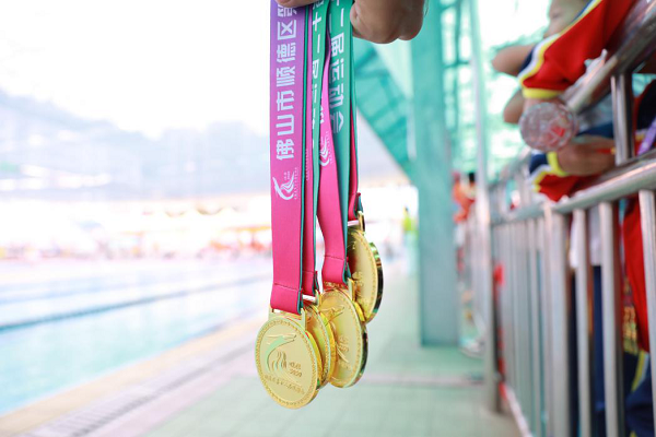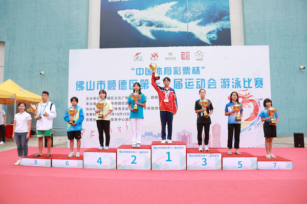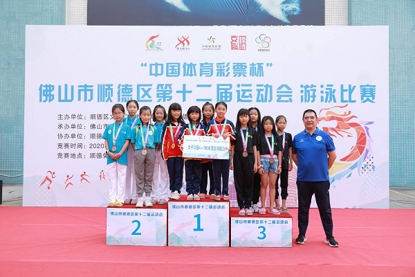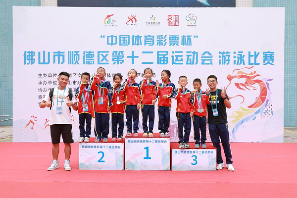 热烈祝贺伦教街道参加佛山市顺德区第十二届运动会游泳比赛荣获52枚金牌,34枚银牌,12枚铜牌,以1655分的最高得分荣获团体总分第一名的优异成绩!本次比赛北海小学共派出30名同学代表伦教街道出战。其中陈韵希同学,周元泰同学,梁子楠同学荣获“优秀运动员”称号,田涛老师荣获“顺德区优秀教练员”称号。