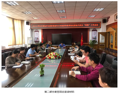 第一部分是召开伦教街道宣传文体旅游和教育线党委换届选举动员大会,会议由邓源强支委主持,他强调党委的换届是党员群众政治生活中的一件大事。要求全体党员要坚持全面贯彻党的十九大精神,深入贯彻落实科学发展观,以《党章》和《中国共产党基层组织选举工作暂行条例》为依据,选好配强新一届党委领导班子。