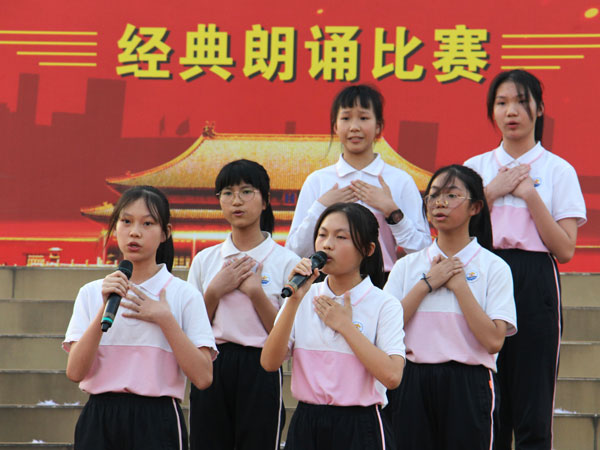 用经典浸润心灵,让阅读丰富人生。此次初二级“中华经典朗诵”比赛带领同学们在诵读中亲近中华经典,在亲近中热爱中华文化;不仅给同学们以人文精神的熏陶,也为学校建设“书香校园”,打造特色品牌,做出了重要的贡献。
