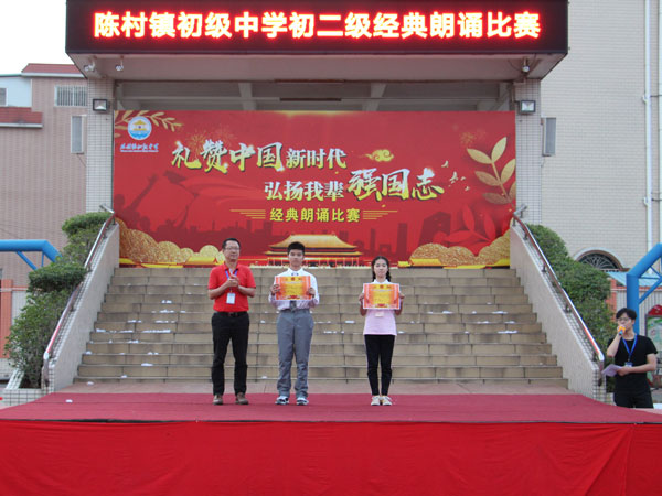 陈村镇初级中学初二级举办中华经典朗诵比赛