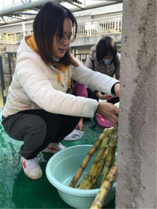 早上8点半,参加活动的老师来到仕版“做回农夫”公益蔬果园,在冬日暖阳的照射下,党团教师们撸起袖子削甘蔗,洗马蹄,制作马蹄蔗水。