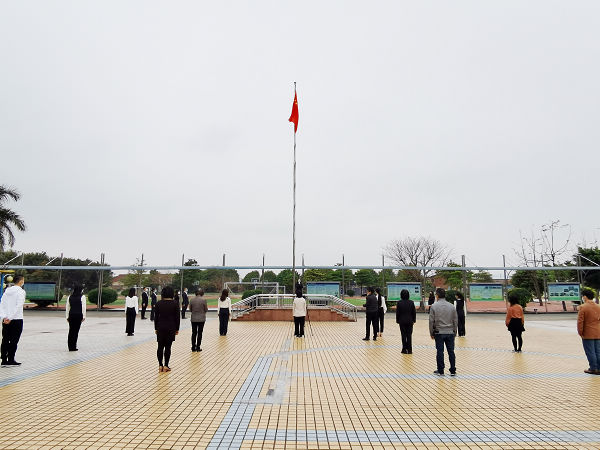 伴随着雄浑激昂的国歌,鲜艳的五星红旗在罗沙校园冉冉升起。升旗台前,老师们衣着端庄,队列整齐;电脑、手机屏幕前,师生、家长们神情庄严肃穆,行礼,全体同时齐唱国歌。