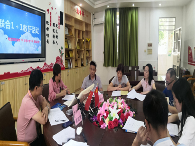 6月19日早上,龙江实验集团华东小学与东海小学联合1+1教研活动在东海小学阶梯室举行。