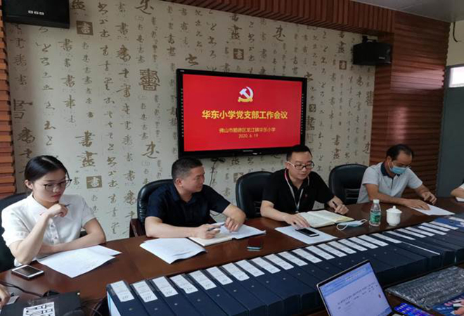 华东小学党支部书记李耀宗总结近段时间的党建工作,为华东小学的党员同志在学校各项工作中体现出来的勇挑重担、冲锋在前的精神点赞,并勉励大家再接再厉,为华东小学创建顺德区品牌学校而努力。