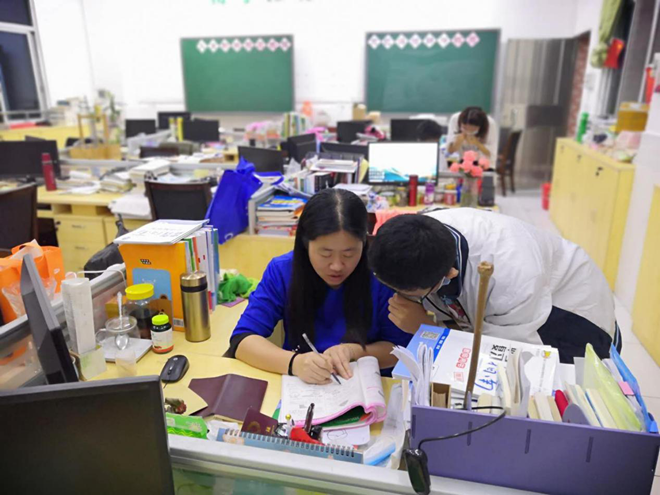 即使平时工作再忙,也会坚持认真完成栩栩如生的课件,只为让孩子们记忆深刻;即使每天凌晨一点的办公室灯还在亮,第二天早上的晨读一定不会缺少她的身影,只为那朗朗读书声;即使缺少假期,也坚守岗位以校为家,只为守护在这群雪域少年的身旁。格桑花的培育,是责任,更是前进的动力。