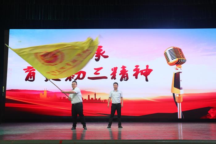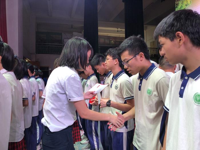 最后,九年级郑振飞级长把寓意着九年级精神的旗帜交到八年级麦景志级长手上,同时也把九年级坚定的信念和奋斗的精神传递给八年级的学子们。