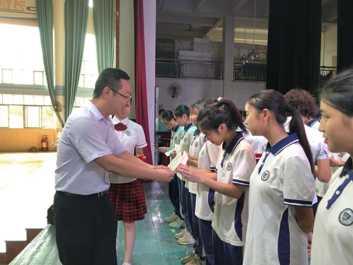 接着, 冉思柱老师代表全体九年级老师在离别之际送上了真诚的祝福。他饱含深情地回忆起跟同学们在一起的美好时光,并希望大家:让育贤精神心中永存,用一颗真诚的心向世界播撒温暖和阳光,坚强勇敢,坦然无愧地看待自己,珍爱平凡而充实的人生!不管走到哪里,都要与好书为友,与挚友相伴,无愧于自己、无愧于生活、无愧于这个激情四射的时代!