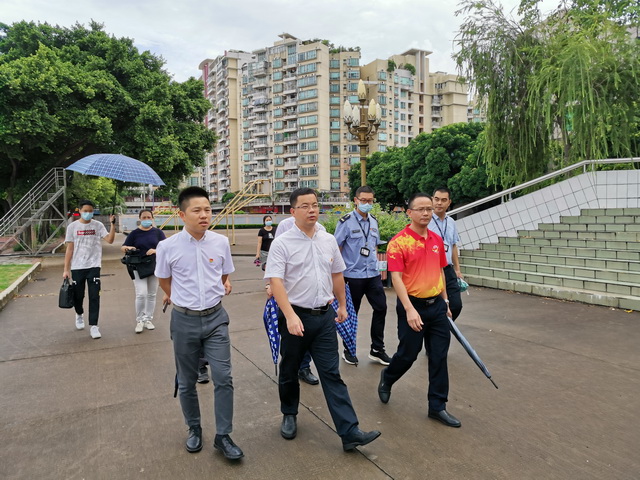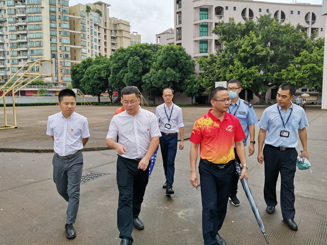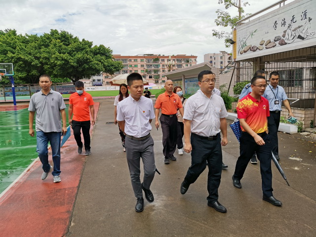 8月13日下午,勒流街道党工委书记王光、宣传文体局副局长郭永添同志以及相关单位领导,在教育局常务副局长王家伦同志的陪同下莅临我校对创文工作进行视察。