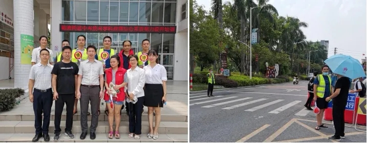 学校行政帮助住宿学生搬运行李,初三级家委前来协助教师维持学校路段秩序,为返校学子创造安全通畅的道路环境。