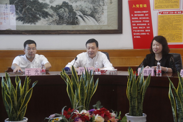 | 9月10日上午,在第36个教师节当天,顺德区政协主席周文、副主席黄燕霞、常委钟景荣,勒流街道党工委书记王光,区教育局副局长张毅,勒流街道教育办公室主任王家伦等领导一行,到新球中学开展慰问调研活动,向一线教师致以节日的问候。新球中学党总支书记、校长何兴球率行政班子成员陪同。 参观校园 一行人首先参观了学校的跳绳俱乐部和跆拳道训练场。何兴球校长介绍说,新球中学跳绳俱乐部自成立以来,本着东风小学跳绳精神由新球传承和以绳育人的理念,体现更高、更快、更强的奥运精神,经过长期的不懈的训练,取得了骄人的成绩,现已成为勒流素质教育的品牌;跳绳队将在明年代表广东省参加全国学生运动会。新球跆拳道队则实现了连续七年获得顺德区团体总分第一名,成为学校社团的品牌,跆拳道队将代表勒流参加区运会。参观领导对学校在素质教育方面取得的成绩给予了充分的肯定。 随后,周文等领导走进了初二办公室,看望一线教师,给他们送上节日的祝福,给教师代表杨清老师和陈理勤老师献花并与他们合影留念。 与教师合影 最后,慰问组与我校教师代表在校董室座谈。何兴球校长作了题为“为打造顺德区品牌优质初中学校而奋斗”的汇报发言,从中考成绩、学生全面发展、未来学校发展的定位与思考等几个方面,简要汇报了学校的教育教学各项工作,并结合学校实际提出了学校发展面临的困难。他说,学校的宿位不足是制约学校发展的难题,希望区委区政府能加大对学校硬件方面的投入。 街道党工委书记王光,区教育局副局长张毅充分肯定了学校的办学理念和近年来取得的成绩。王光书记希望新球中学能百尺竿头,再进一步,为勒流教育做出新的贡献。张毅副局长勉励学校和全体教师把握发展机遇,加快教育创新,进行绩效改革,提升办学质量,走好特色发展之路。 王光书记发言 张毅副局长发言 周文主席作总结发言。他高度肯定了新球中学2020年超额完成区教育局下达的指标任务,祝贺新球中学连续获得“顺德区初中教学质量优秀奖”。他赞扬了新球中学在新的领导班子的带领下,学校有很大提升,教师们的精气神非常不错,对学校的发展定位和未来的思考充满信心。他透露区镇两级投入将用2~3年时间解决学校宿位不足的问题,未来区镇两级加大对优秀教师的奖励。同时建议镇街召开教育工作大会,总结过去,表彰先进,给老师鼓劲,再创勒流教育新辉煌! 周文主席作总结发言 合影留念 文:于华伟 |