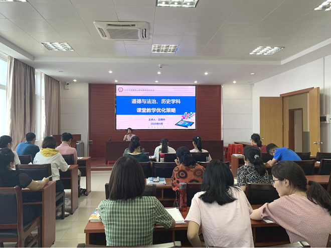 2020年9月8日上午,政史心科组全体老师集中办公楼五楼会议室,展开了联合教研活动,活动由吕倩玲科长主持。
