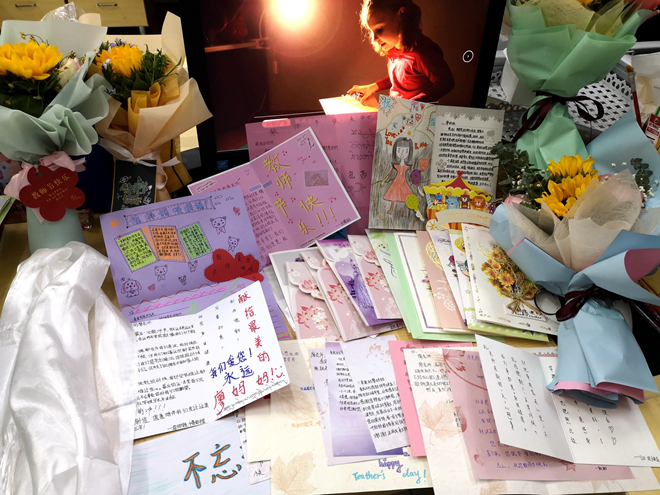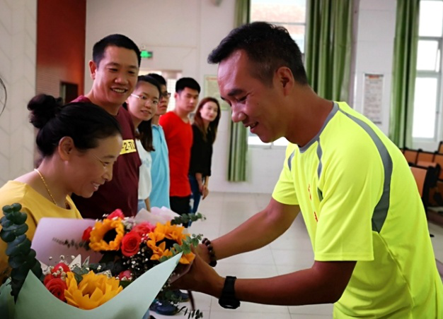 (给老师送上鲜花)