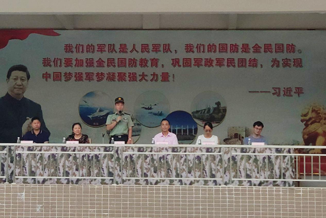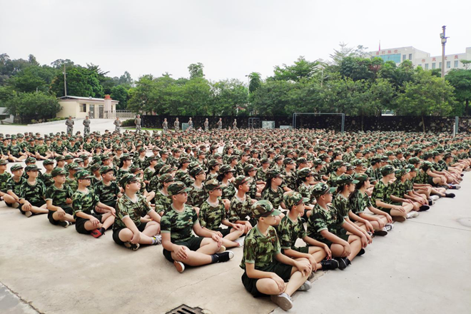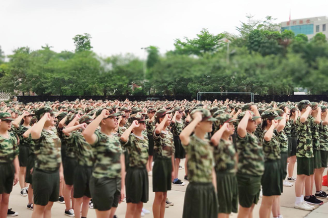 上午11:00,在雄浑激昂的国歌声中,江义中学700多名新生在佛山青少年军校举行了开营仪式。