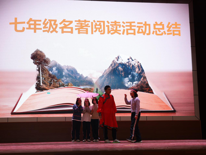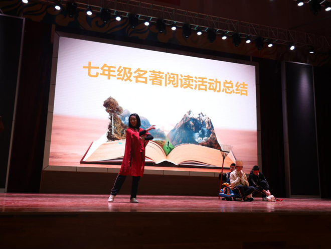 为了打造书香校园,掀起读书热潮,让学子们走进名著,传承经典,12月23日上午,七年级全体师生齐聚体育馆参加名著阅读总结活动。这次活动以《西游记》的小剧场形式展开,七年级的全体师生都认真观看,兴致颇浓。